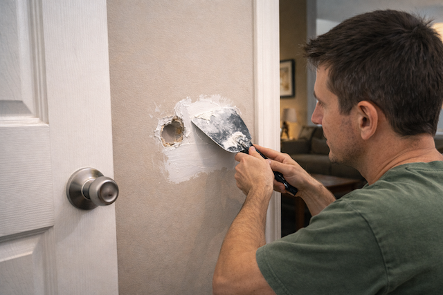 If you are trying to patch drywall properly but want the repair to disappear once painted, review our repair larger drywall holes approach before deciding whether a quick patch is enough.